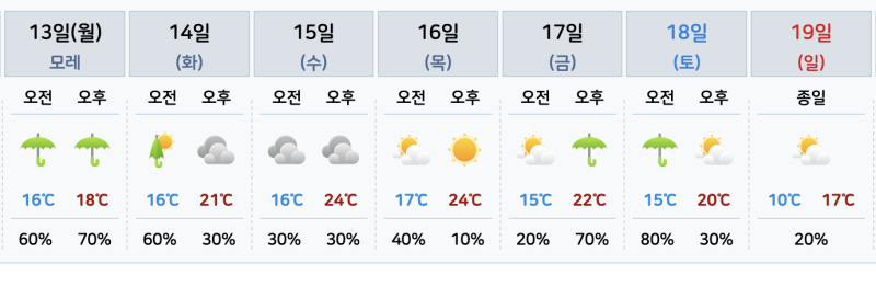 마지막으로 날씨입니다. 대한민국 서울을 기준으로 알려드립니다.