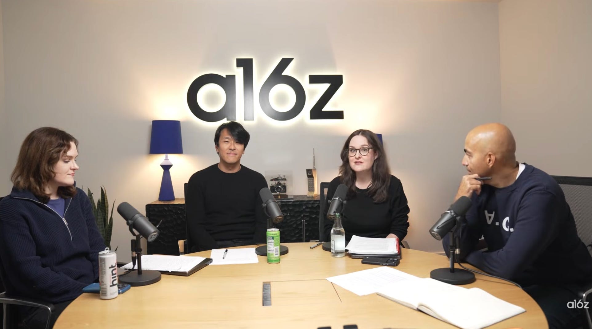 대한민국 시각 기준 12월 30일 공개된 이 에피소드에는 a16z 컨슈머 팀 소속의 올리비아 무어(Olivia Moore)와 저스틴 무어(Justine Moore), 브라이언 김(Bryan Kim)과 제너럴 파트너 아니쉬 아차야(Anish Acharya)가 참여했는데요