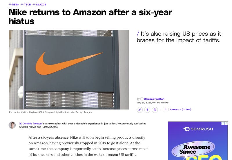 나이키가 아마존 리테일 스토어에 입점한 것이 가장 주목할 만한 변화였습니다.