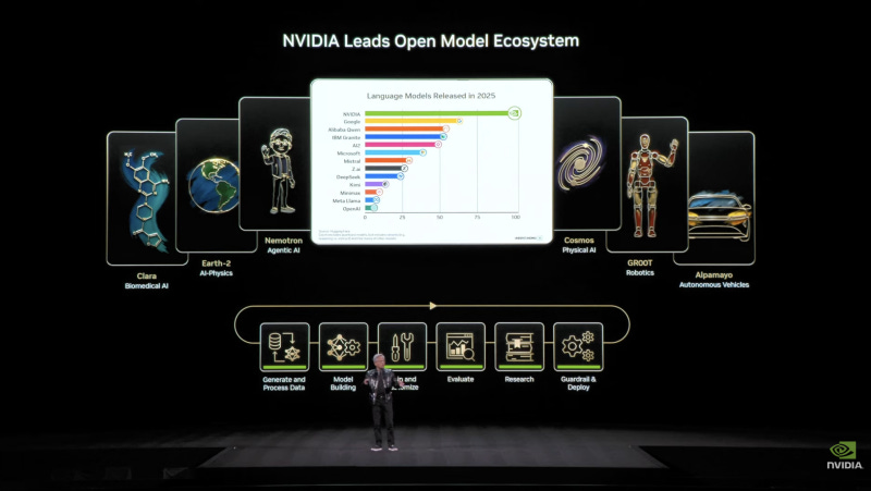 ‘Nemotron-3’는 획기적인 역작이며, 조만간 여러분은 Nemotron-3의 다양한 버전을 만나보실 수 있을 겁니다. ‘Cosmos’는 세상이 어떻게 작동하는지를 이해하는 최전선의 오픈 월드 파운데이션 모델입니다.