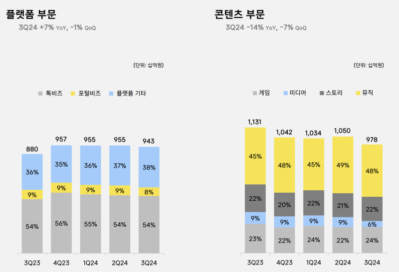 플랫폼 부문 - 9,435억 원 (YoY +7.2%↑, QoQ -1.2%↓)