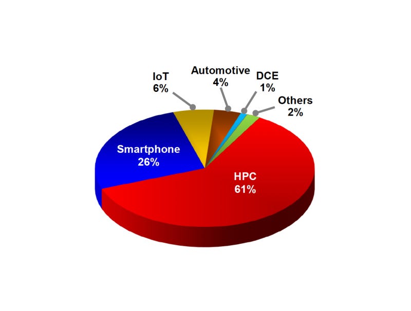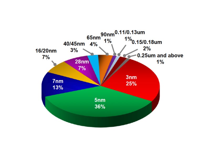 가장 비중이 큰 공정은 5nm(36%)였으며, 3nm(25%)와 7nm(13%)가 뒤를 이었습니다.